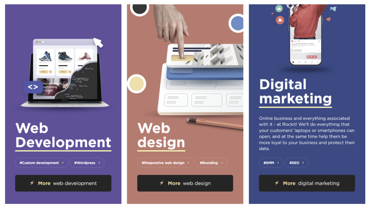 We develop modern web design, simple and complex websites for various clients, including digital marketing solutions (SEO and SMM) and e-commerce. We also provide long-term IT support for our solutions.