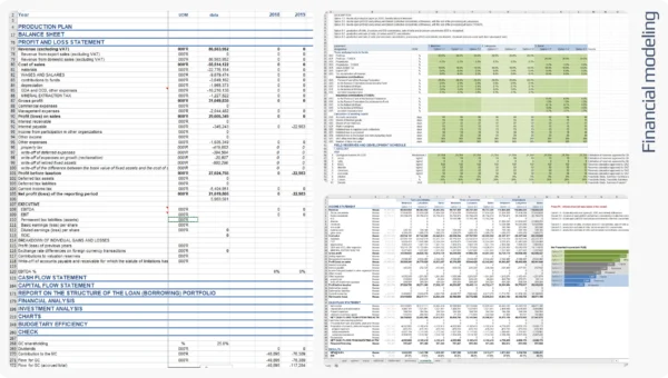 With our extensive corporate experience, we can deliver solution for any problem that required technical or financial calculations: input tables, charts, various financial models (budgets, evaluations, startups, LBO, 3-statements), technical calculations, and many more.