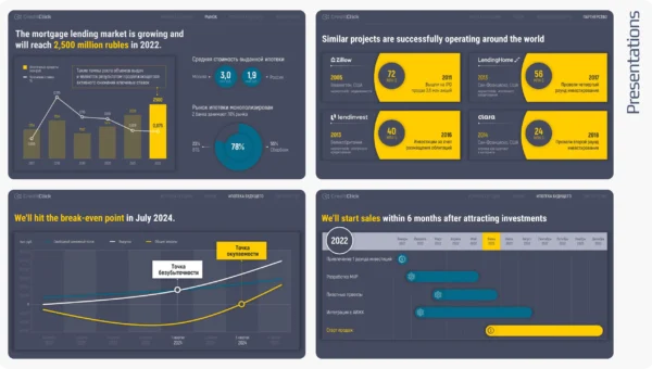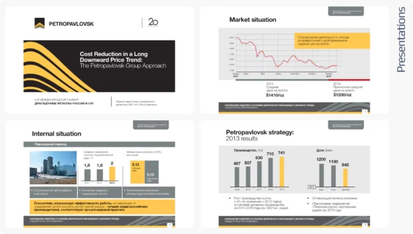 Usually we are ordered both redesign of existing layouts and design "from scratch". If your company does not have a corporate identity - we can make a template with basic elements (colors, fonts, basic elements) as part of the work on the presentation. If necessary, we will also draw infographics, custom icons, graphics and anything else you need.
